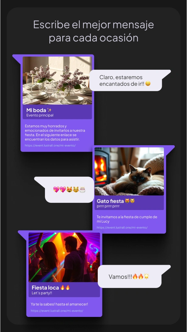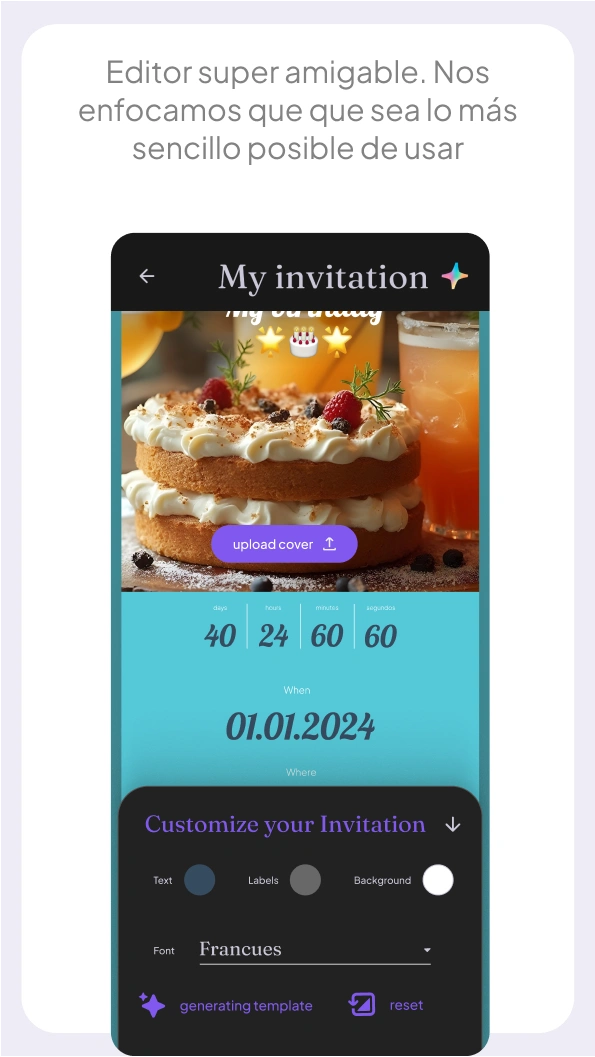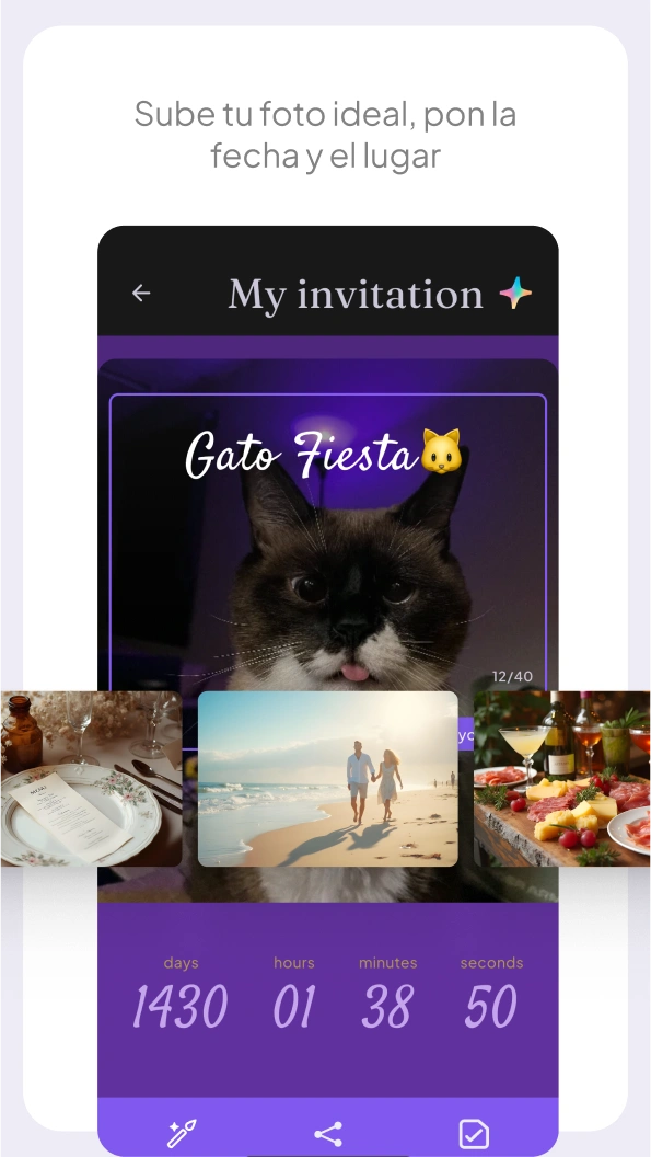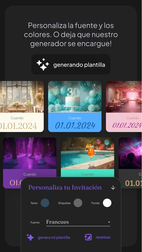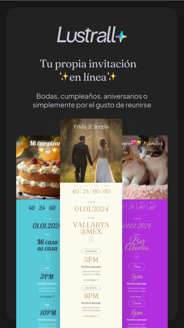 Bodas, cumpleaños, fiestas, reuniones. Personaliza tu invitación para la ocasión.